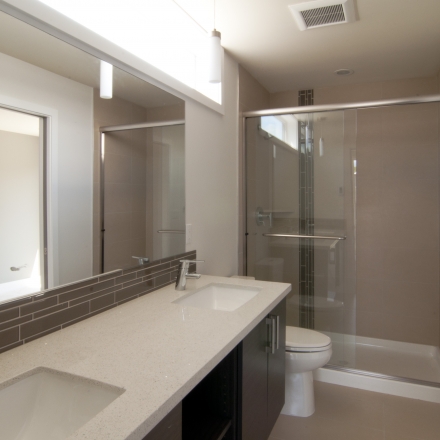 Valentine Communities homes seamlessly blend modern technology with nature, featuring eco-friendly materials and clean organic designs. Each home is its own secluded oasis, with a spacious rooftop deck perfect for entertaining, and expansive windows throughout to allow for plenty of natural light. The ultra-modern kitchens feature gorgeous tile backsplashes, Quartz slab countertops, ample Canyon Creek cabinets, and high-end stainless steel appliances. Bathrooms feature Grohe faucets, deep soaking tubs, and hybrid heated Italian tile floors. All homes at Valentine Communities also boast beautiful bamboo flooring and a sleek gas fireplace ideal for cold winter nights. Perfect timing to enjoy the hot summer with the ductless mini-split AC/Heating system in each room.